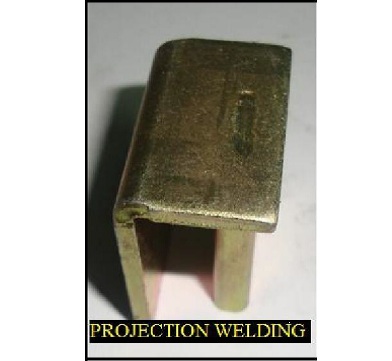 Projection welding is a variation on resistance welding. Basically, a protrusion is placed on one of the two materials to be welded. Projection welding is a variation of resistance welding in which current flow is concentrated at the point of contact with a local geometric extension of one (or both) of the parts being welded. These extensions, or projections, are used to concentrate heat generation at the point of contact. Heating is facilitated by resistance heating and is highly influenced by the contact area resulting from the amount of deformation, which is also temperature dependent due to material softening therefore to generate a weld nugget faster and at a lower current level compared to conventional spot welding..The process typically uses lower currents, lower electrode forces and shorter welding times than does a similar application without the projection.